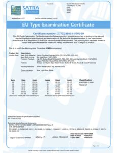 Su material y certificación con categoría AA. Jean con cordura y protecciones extraibles.
